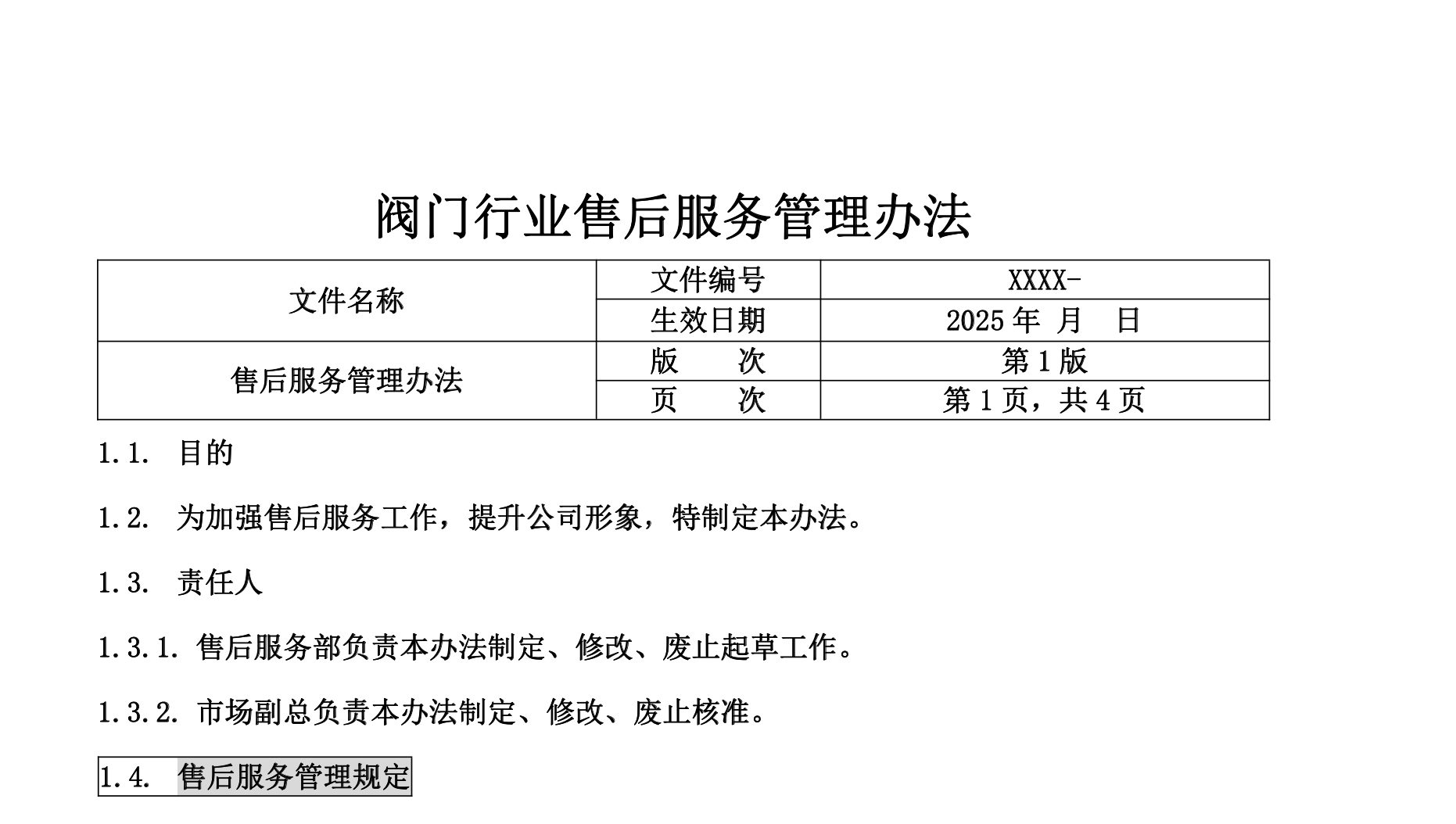阀门行业售后服务管理办法