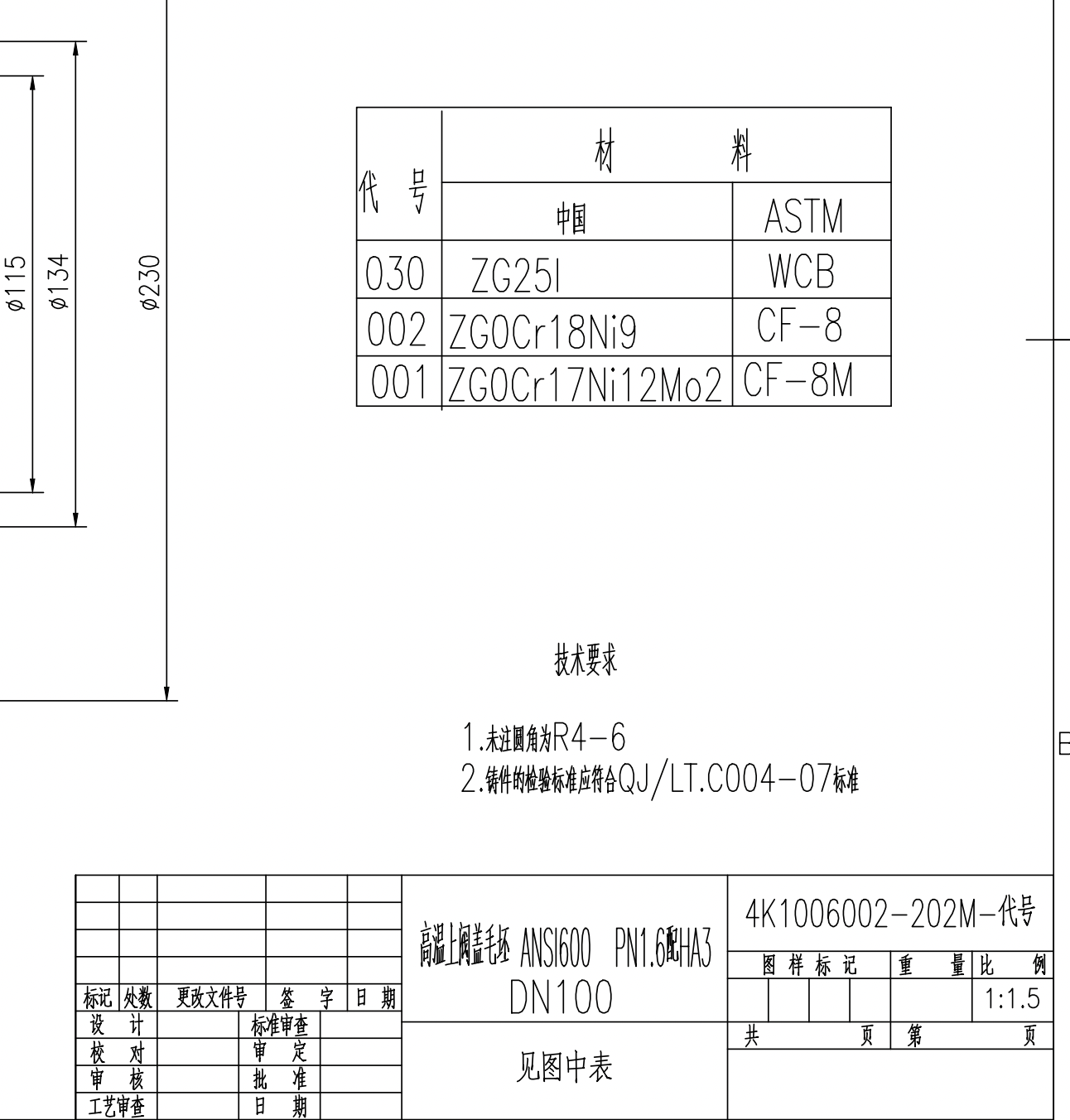 笼式调节阀上阀盖毛坯ANSI600 300 .高温DN100-Model