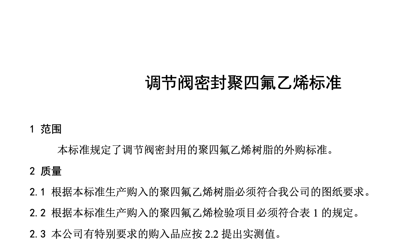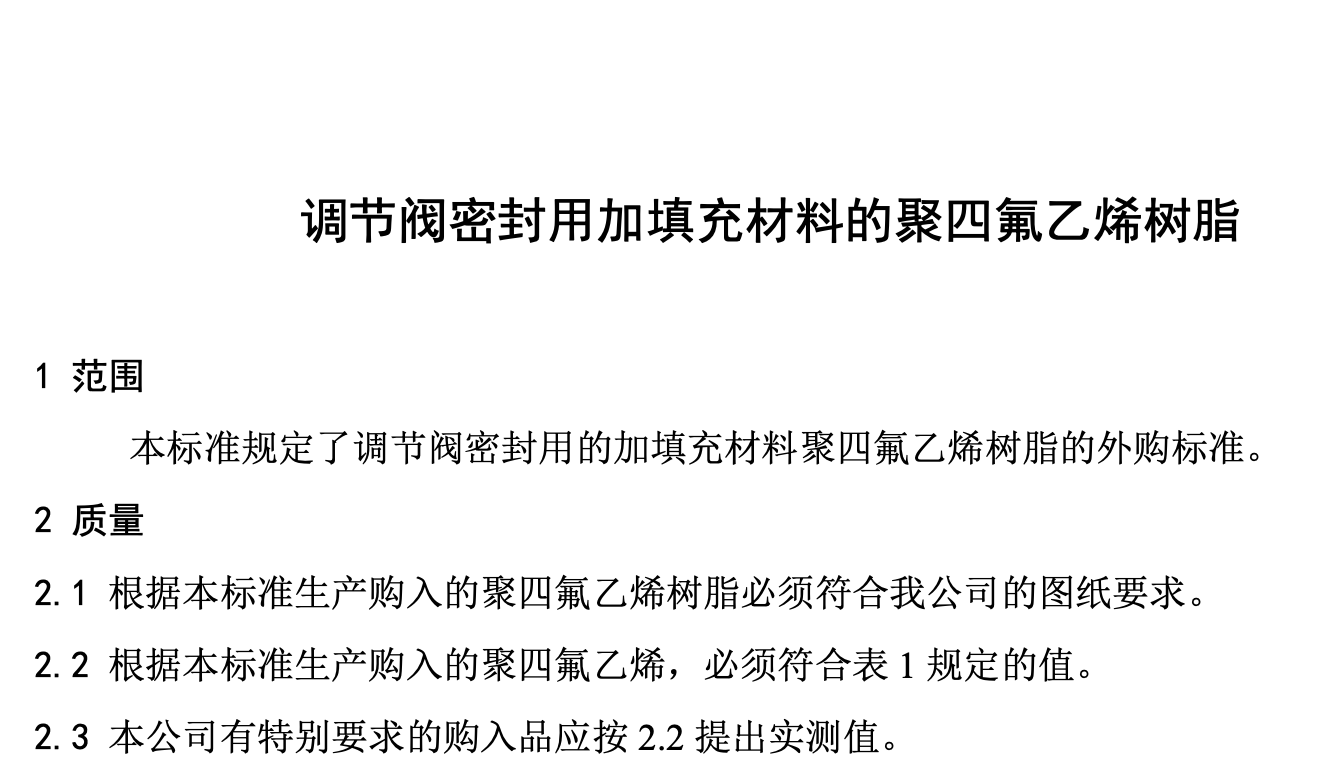 调节阀密封用加填充材料的聚四氟乙烯树脂