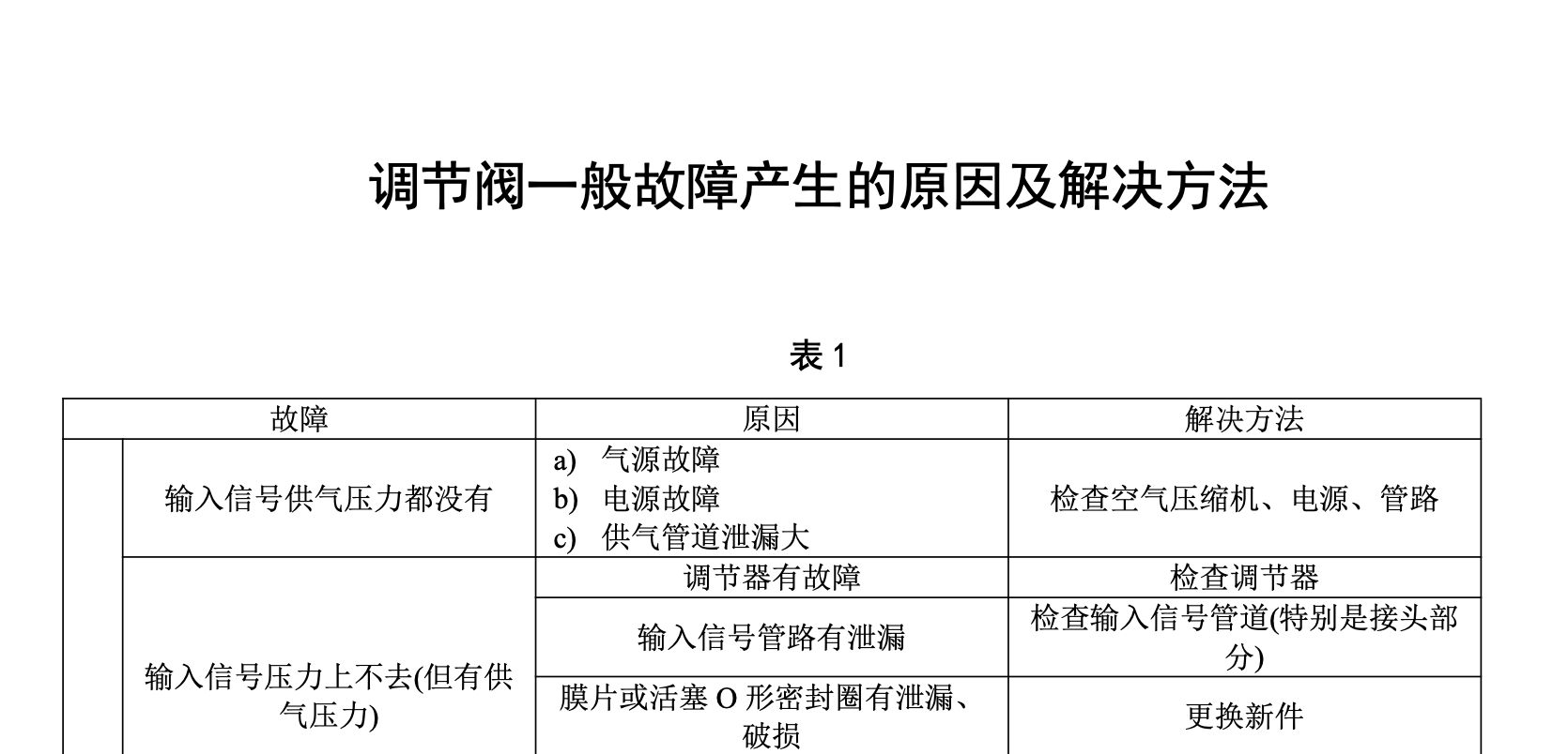 调节阀一般故障产生的原因及解决方法