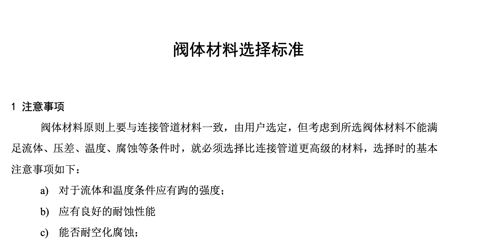 阀体材料选择标准
