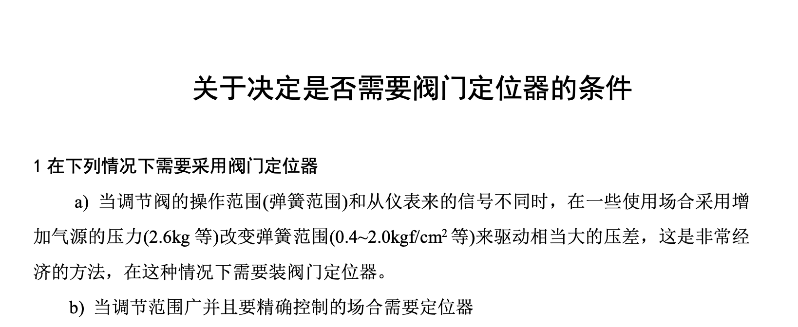 关于决定是否需要阀门定位器的条件