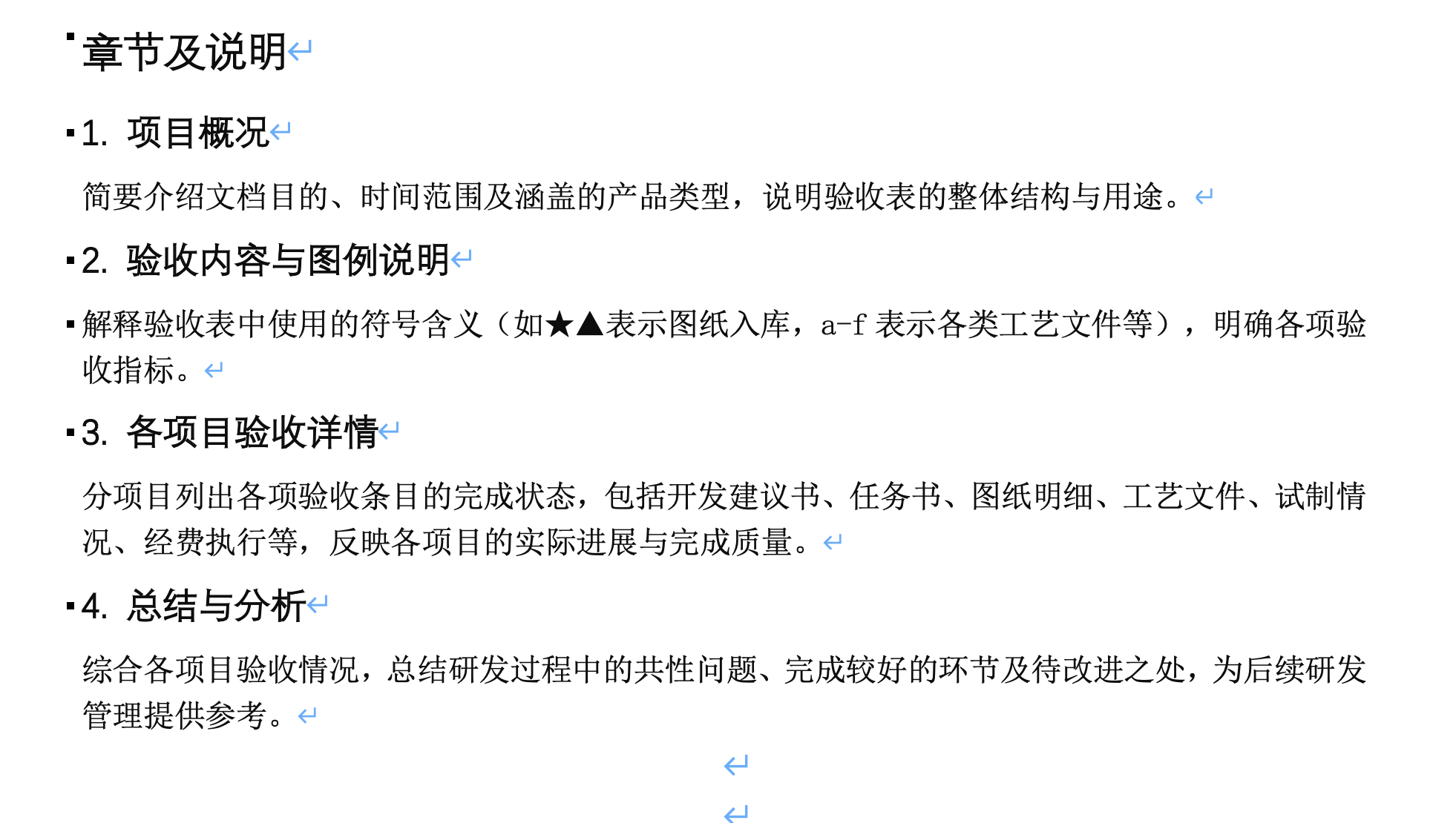 本文档为xxx公司2004年度多个产品研发项目的企业验收汇总表,涵盖阀门、执行机构、流量计、平衡阀等多个产品线的研发进度与成果验收情况。 每个项目均按统一模板记录了从开发建议书、可行性研究、设计评审、工艺文件到试制验证等全流程的完成状态,并使用符号(如★▲、a.b.c.d.e.f等)标注各项任务的完成情况。 文档系统反映了各项目在图纸设计、工艺文件、试制投产及经费控制等方面的实际进展,是企业内部用于跟踪和管理研发项目的重要依据。