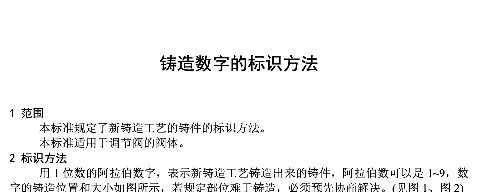 本文规定了采用新铸造工艺生产的调节阀阀体铸件上的数字标识方法,为新型铸件的批次或工艺识别提供了统一、明确的视觉标记规范。
