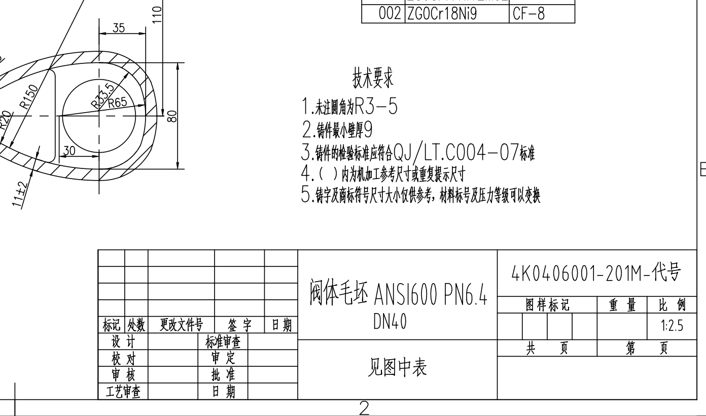 笼式调节阀KCB阀体.ANSI600毛坯DN40-Model